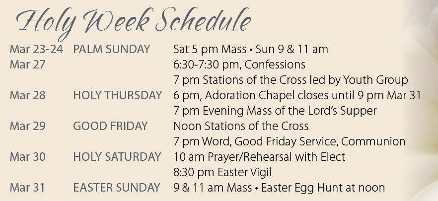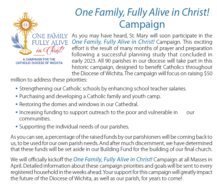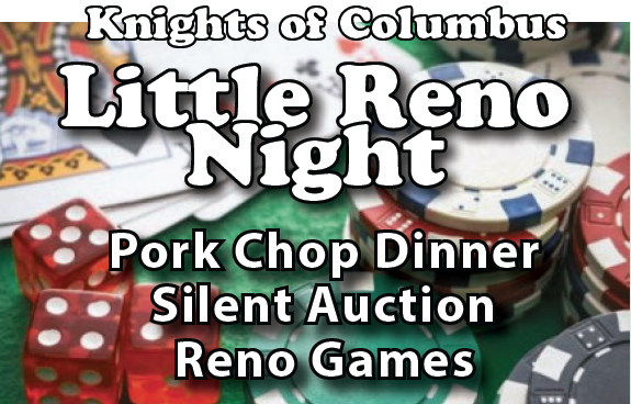Join us Saturday, April 6 at 6 pm in the school commons for a pork chop dinner, auction, and reno games! Tickets are $20/person; kids under 12 eat free. Ticket includes dinner, auction, and chips). Reservations are required by Mar 27. Buy tickets after Mass this weekend or via the button below or call to RSVP - Chuck, 316-258-3439 or Pat, 316-776-2700. Proceeds support the K of C State Supreme Council in purchasing a sonogram machine for Kansans for Life.